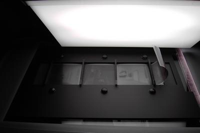 τραβηγμένα και άλλα όχι. Η λύση!!! Ο φωτισμός εξασφαλίστηκε με την τοποθέτηση της φωτοτράπεζας ανάποδα πάνω στο σκάνερ. Ο φωτισμός της ήταν σταθερός και υπεραρκετός για να εμφανιστούν οι λεπτομέρειες του αρνητικού. H τοποθέτηση των αρνητικών πάνω στο τζάμι με παίδεψε περισσότερο. Ειδικά αυτά Shanghai με τίποτε δεν καθόταν ήσυχα. Με το παραμικρό κουλουριαζόταν. Η τοποθέτησή τους κάτω από ένα τζάμι βελτίωσε την κατάσταση αλλά δημιούργησε και αντανακλάσεις καθότι η φωτοτράπεζα ήταν λίγο πιο πάνω από την επιφάνεια του γυαλιού. Η προσωρινή λύση ήταν το βγάλσιμο του λευκού πλεξιγκλάς της φωτοτράπεζας ώστε με αυτό να κρατηθεί το φιλμ οριζοντιωμένο στο τζάμι του σκάνερ.